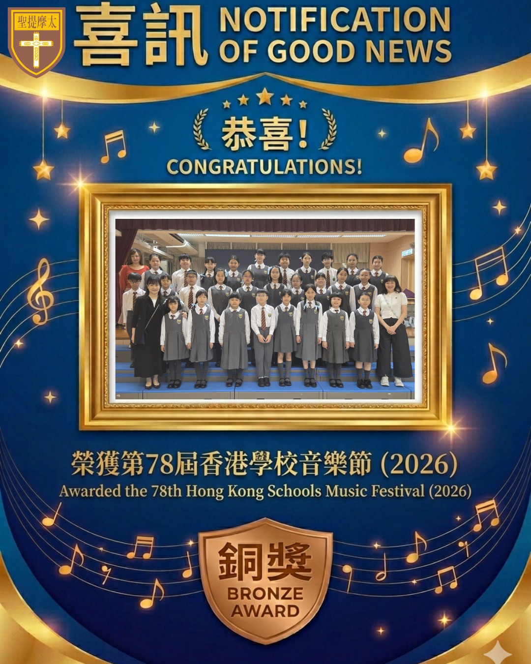 Behind every beautiful note lies the dedication and countless hours of practice of our students. Congratulations to our School Choir on winning the Bronze Award at the 78th Hong Kong Schools Music Festival (2026)!