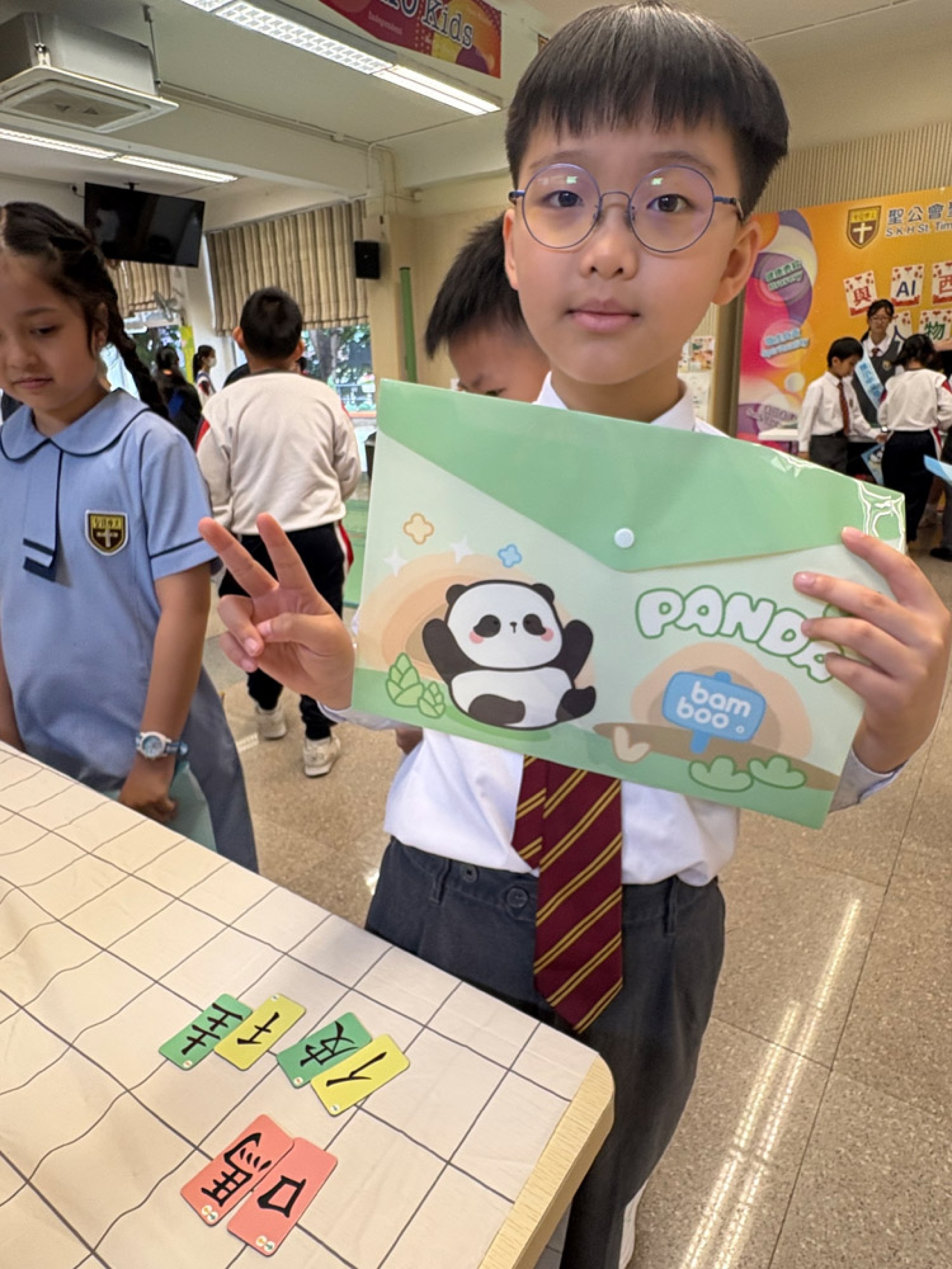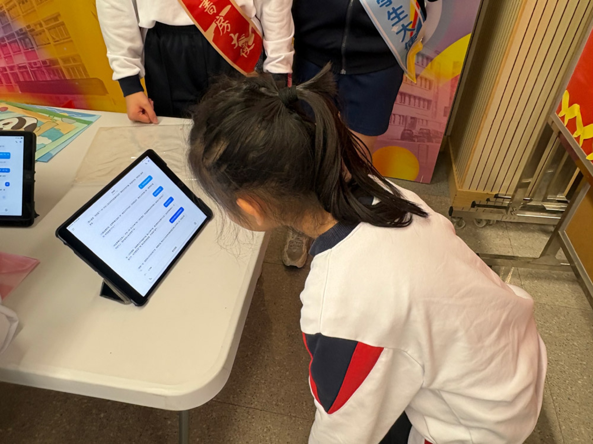 The "Chinese Spelling Fun" booth tested students' mastery of Chinese characters, words, and components, requiring them to spell the correct words within a time limit, combining learning with fun and reinforcing language knowledge.
