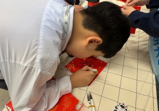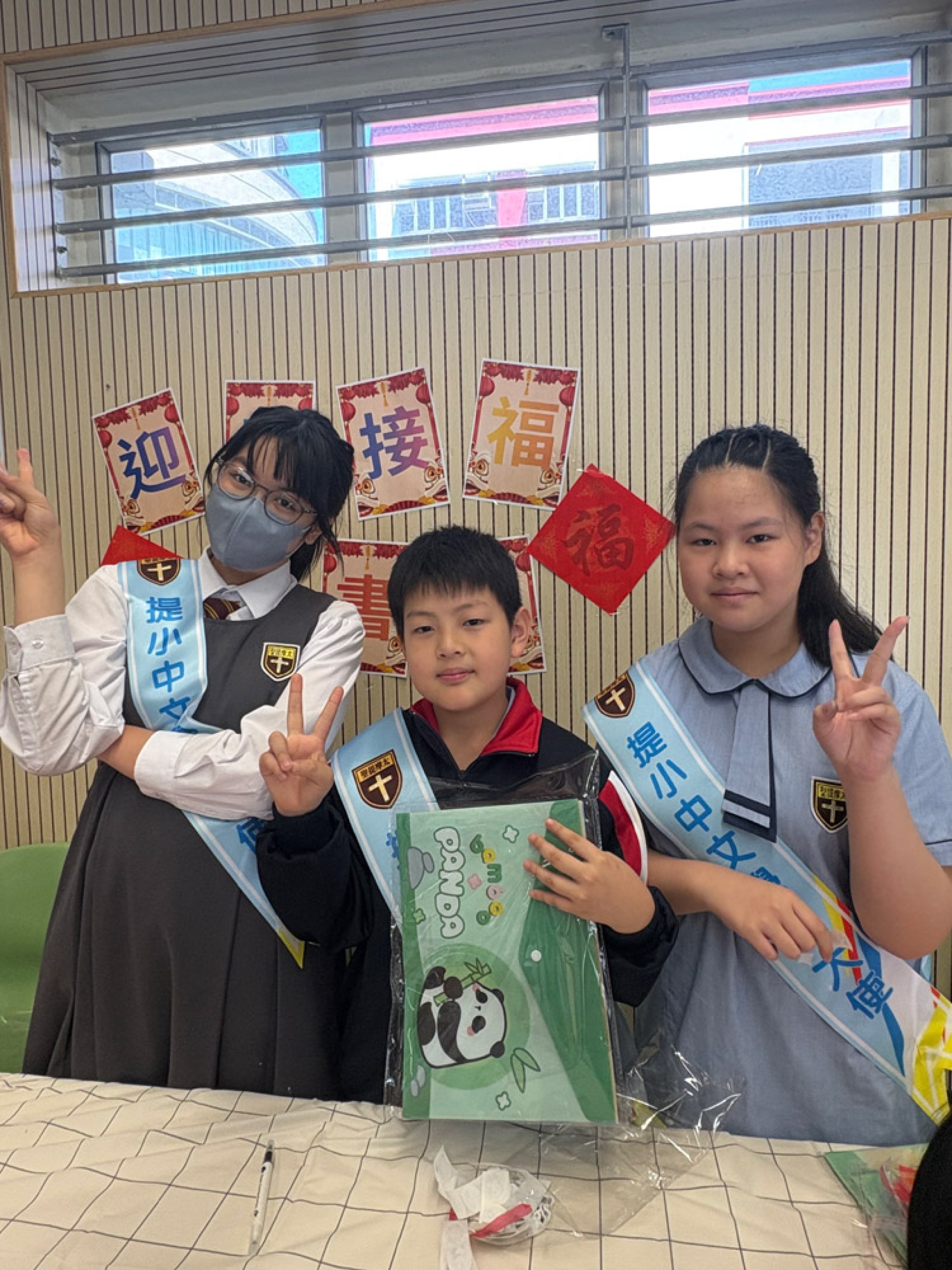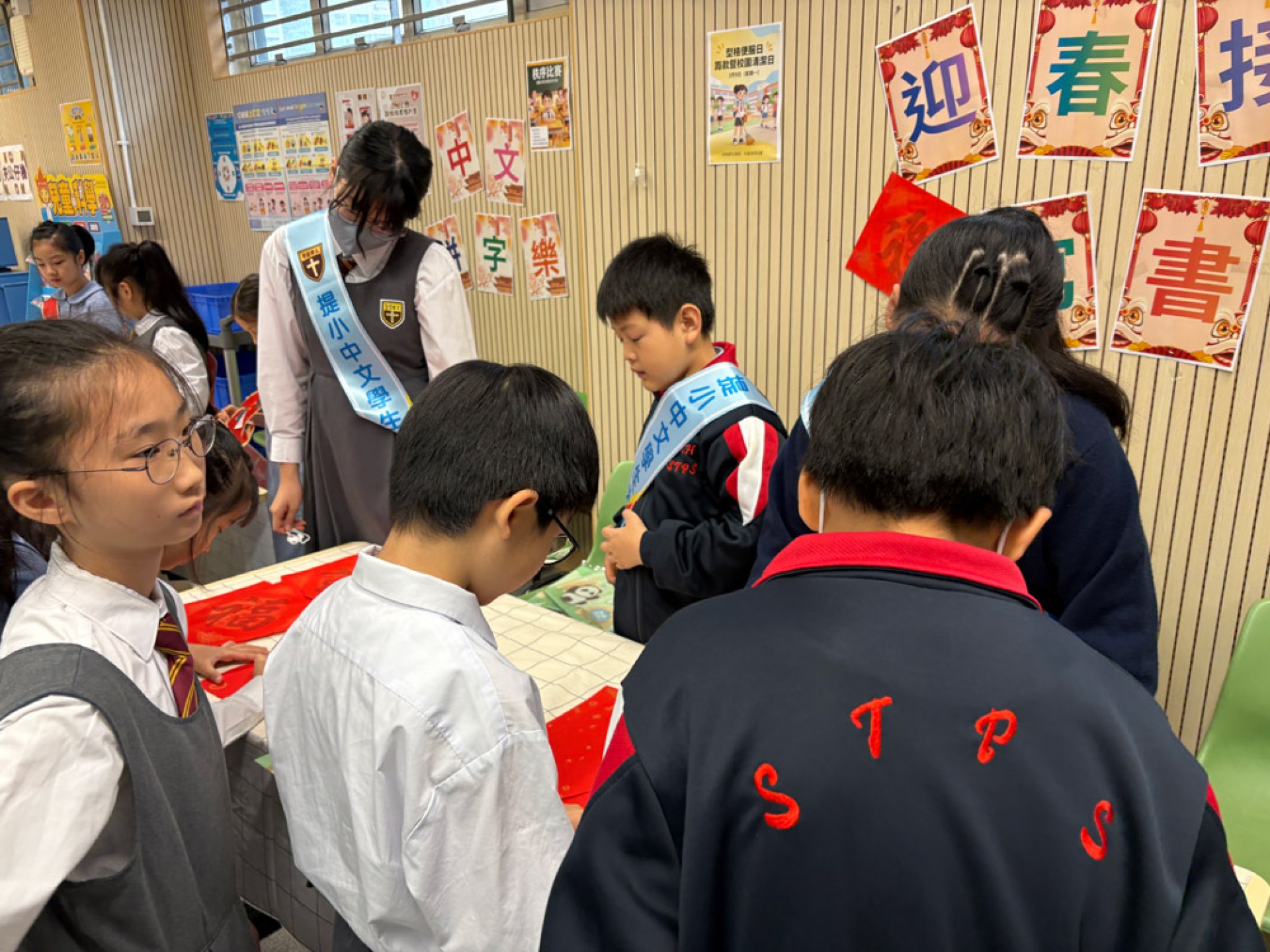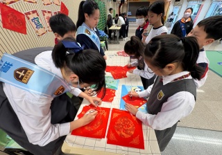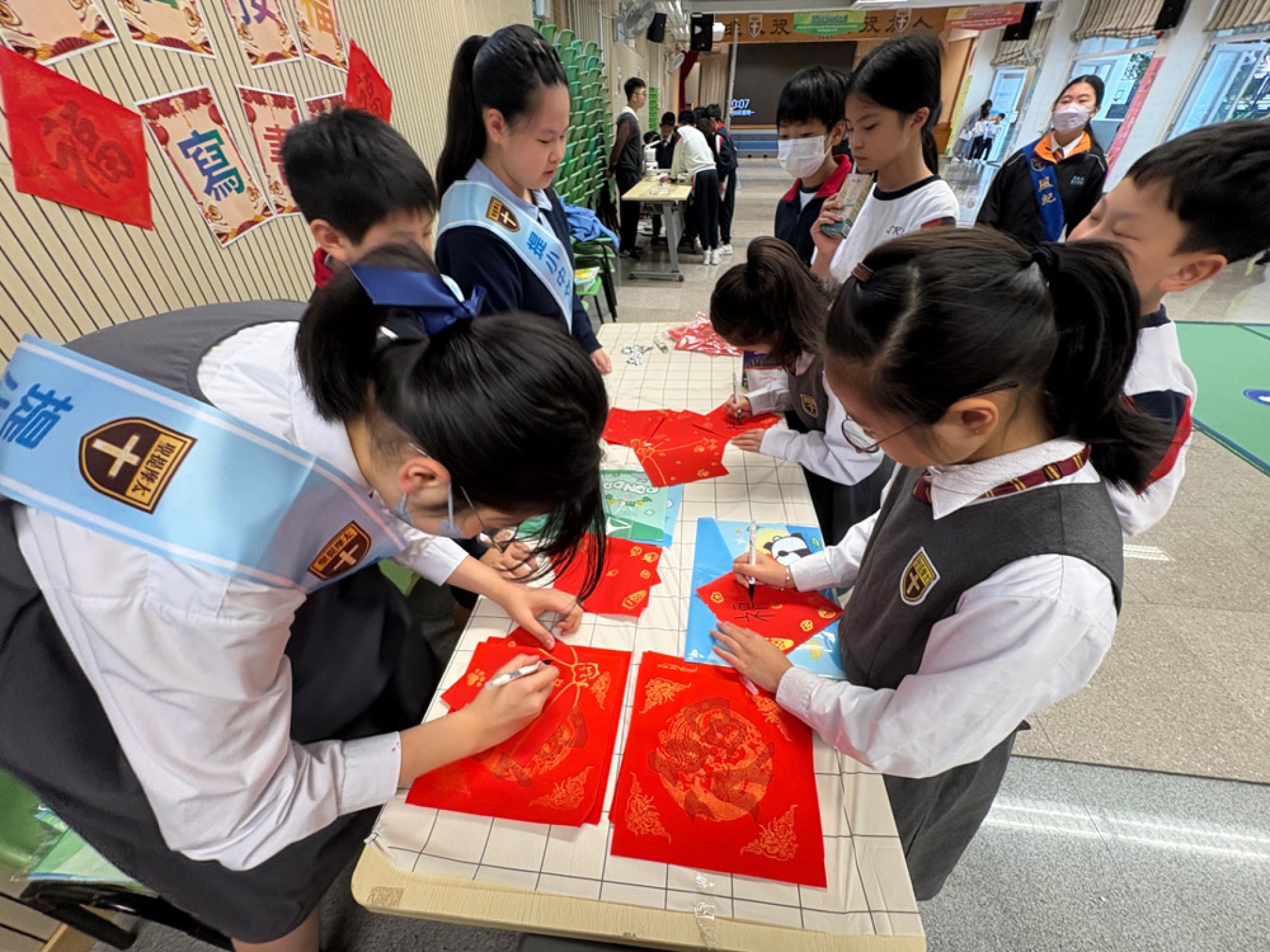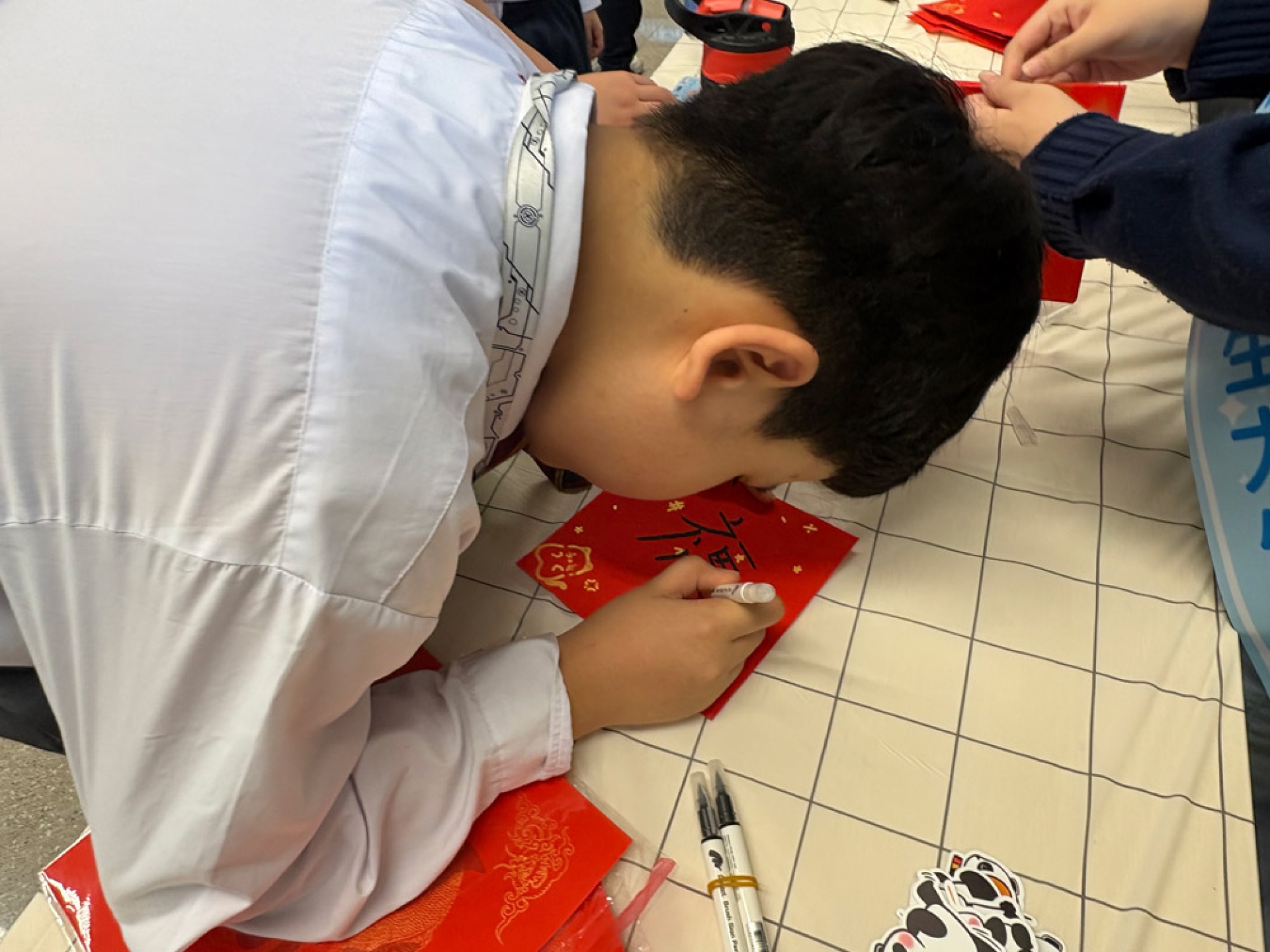 At the "Welcoming Spring and Receiving Blessings Calligraphy" booth, teachers and students wrote auspicious greetings together, experiencing the charm of calligraphy art and appreciating the traditional beauty of Chinese culture.