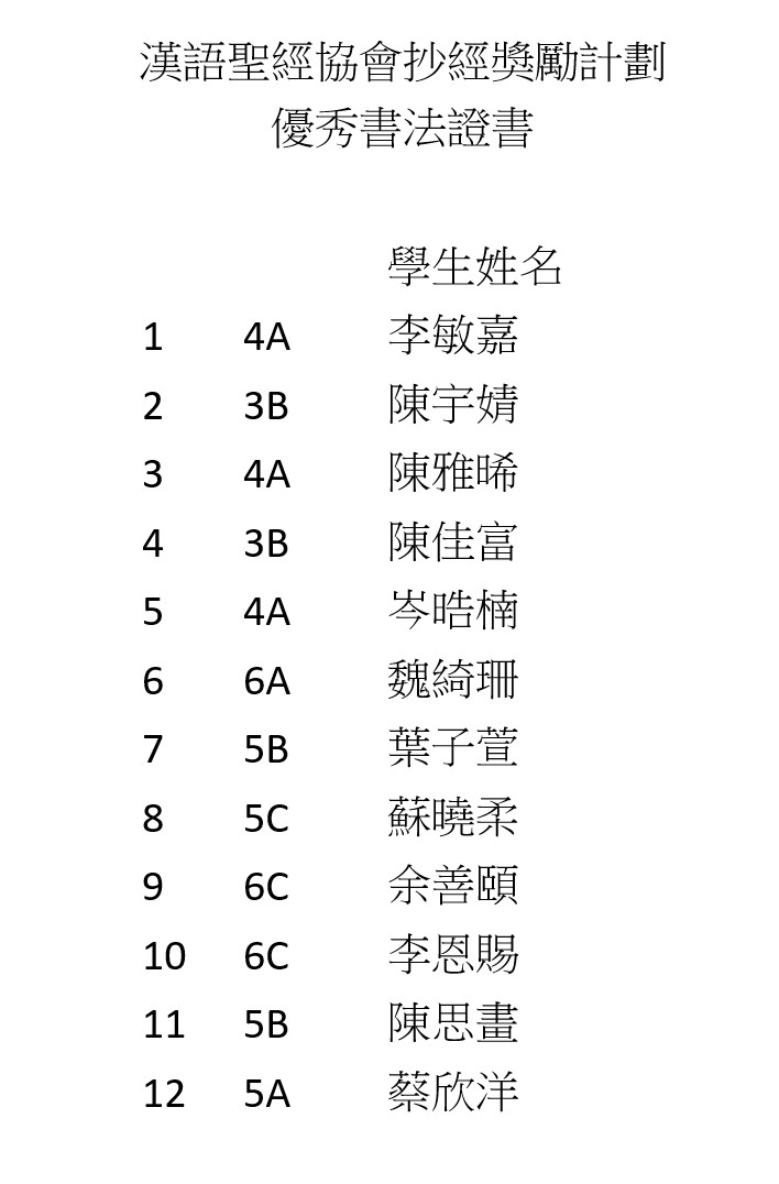 漢語聖經協會抄經獎勵計劃