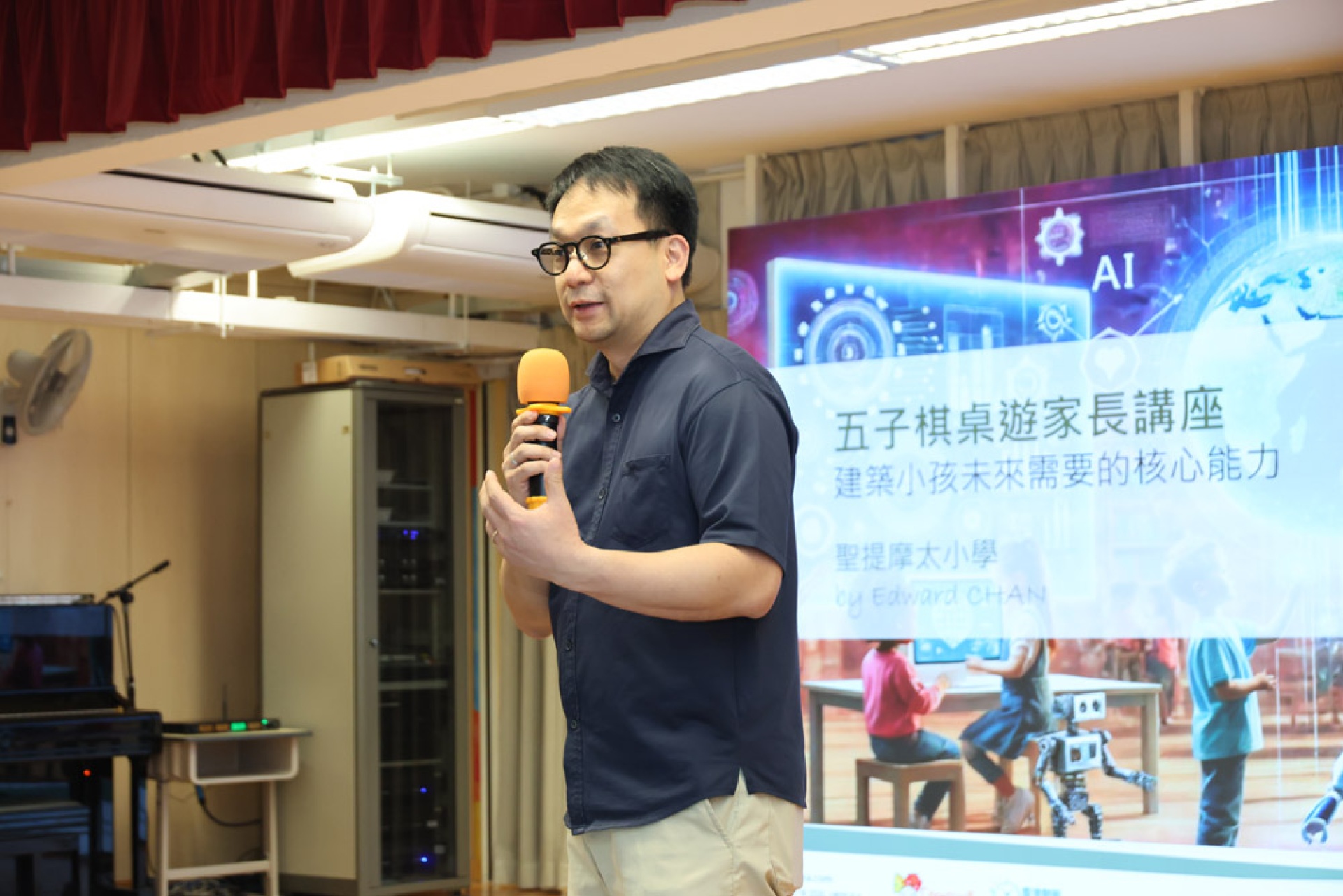 此外,當日亦邀請到中國香港五子棋協會總裁Edward Chan,為家長介紹五子棋作為智力運動的好處。Edward總裁講解五子棋如何鍛煉學生的邏輯思維、專注力及抗逆力,並即場示範簡單的親子對弈技巧,鼓勵家長與孩子在家中透過下棋培養默契,同時傳承中華文化。家長們在輕鬆愉快的氣氛中體驗五子棋的樂趣,更了解到這項智力運動對孩子成長的正面影響。