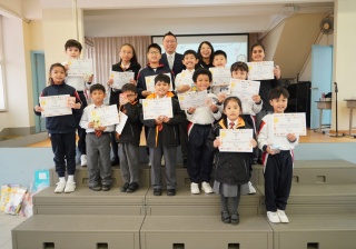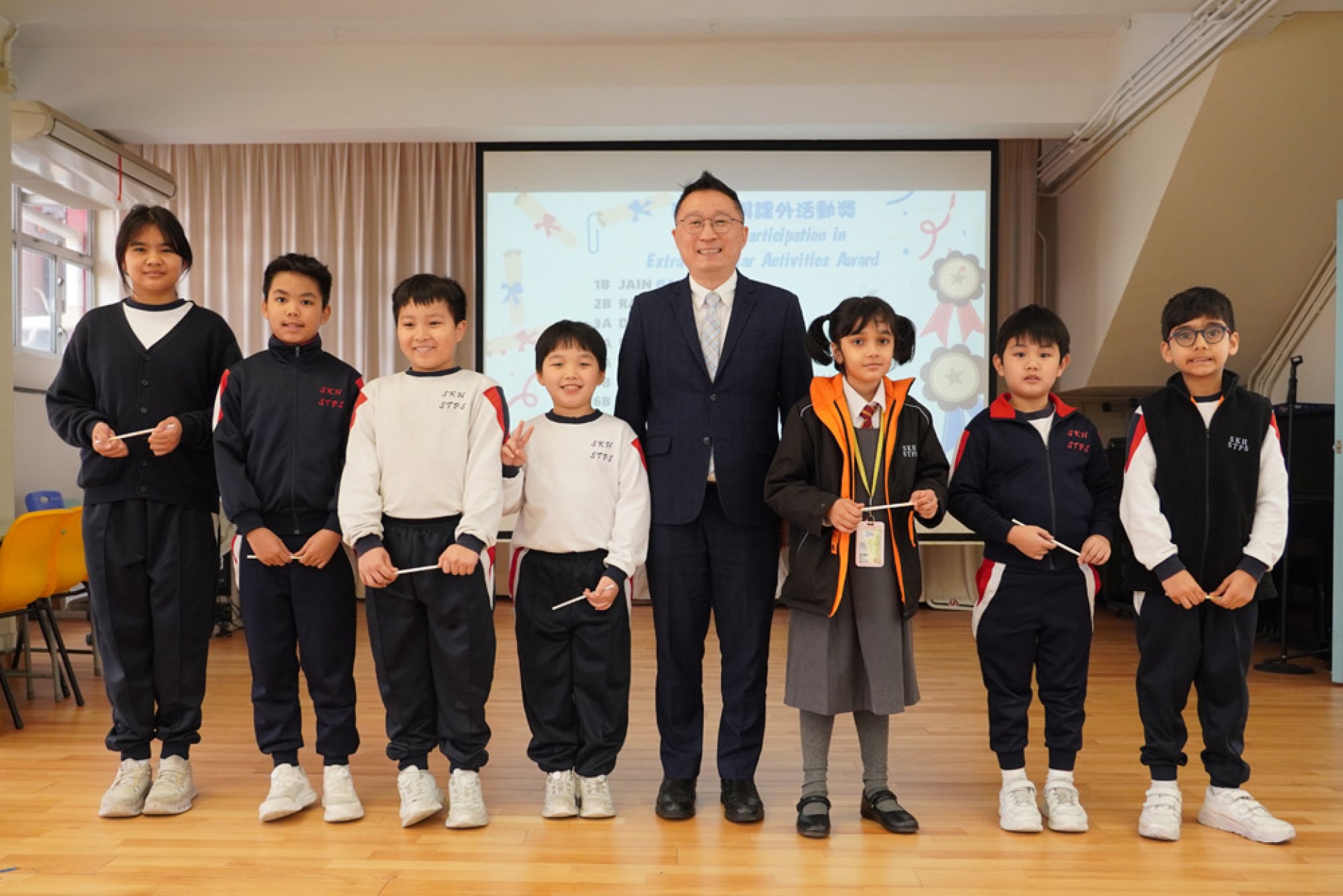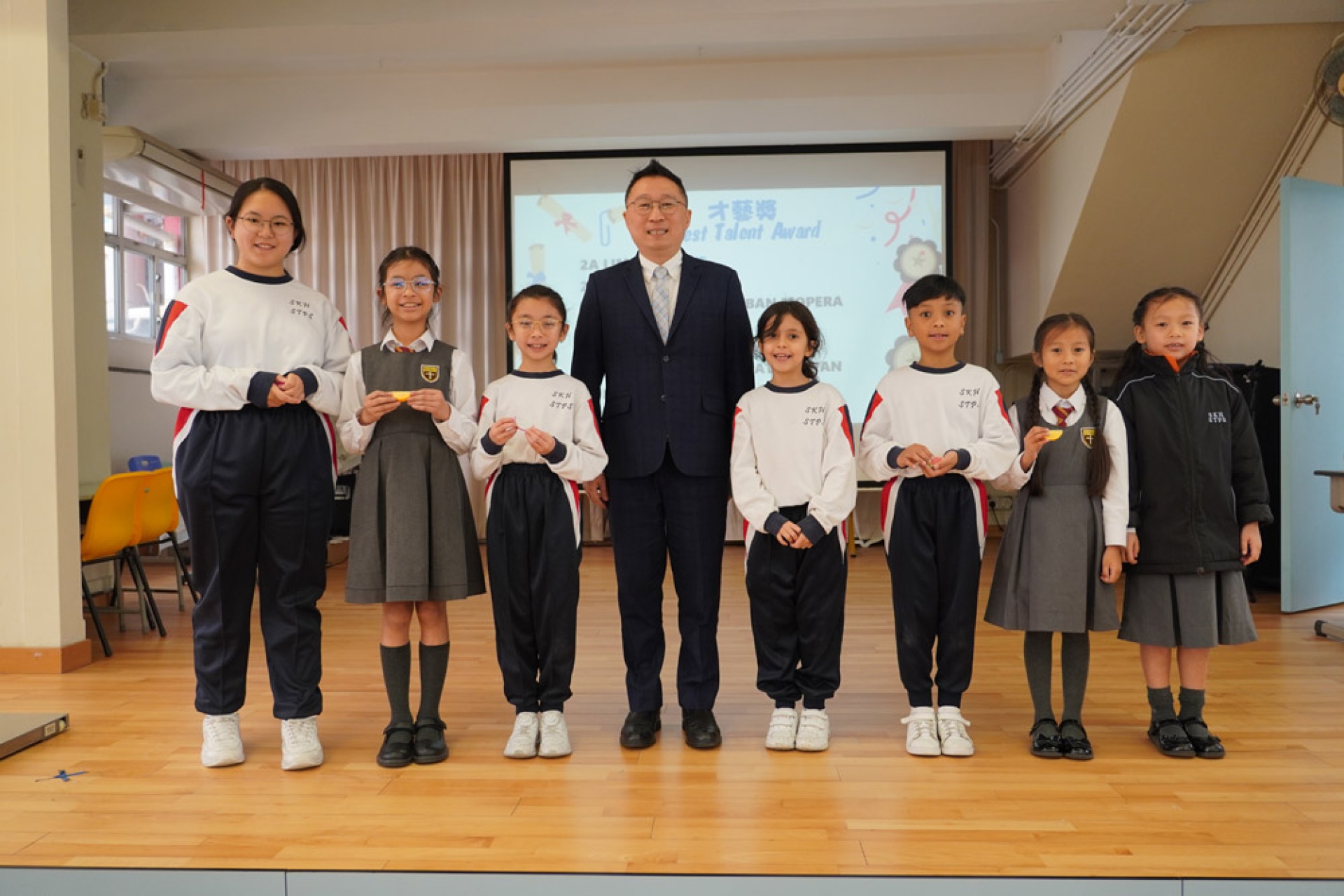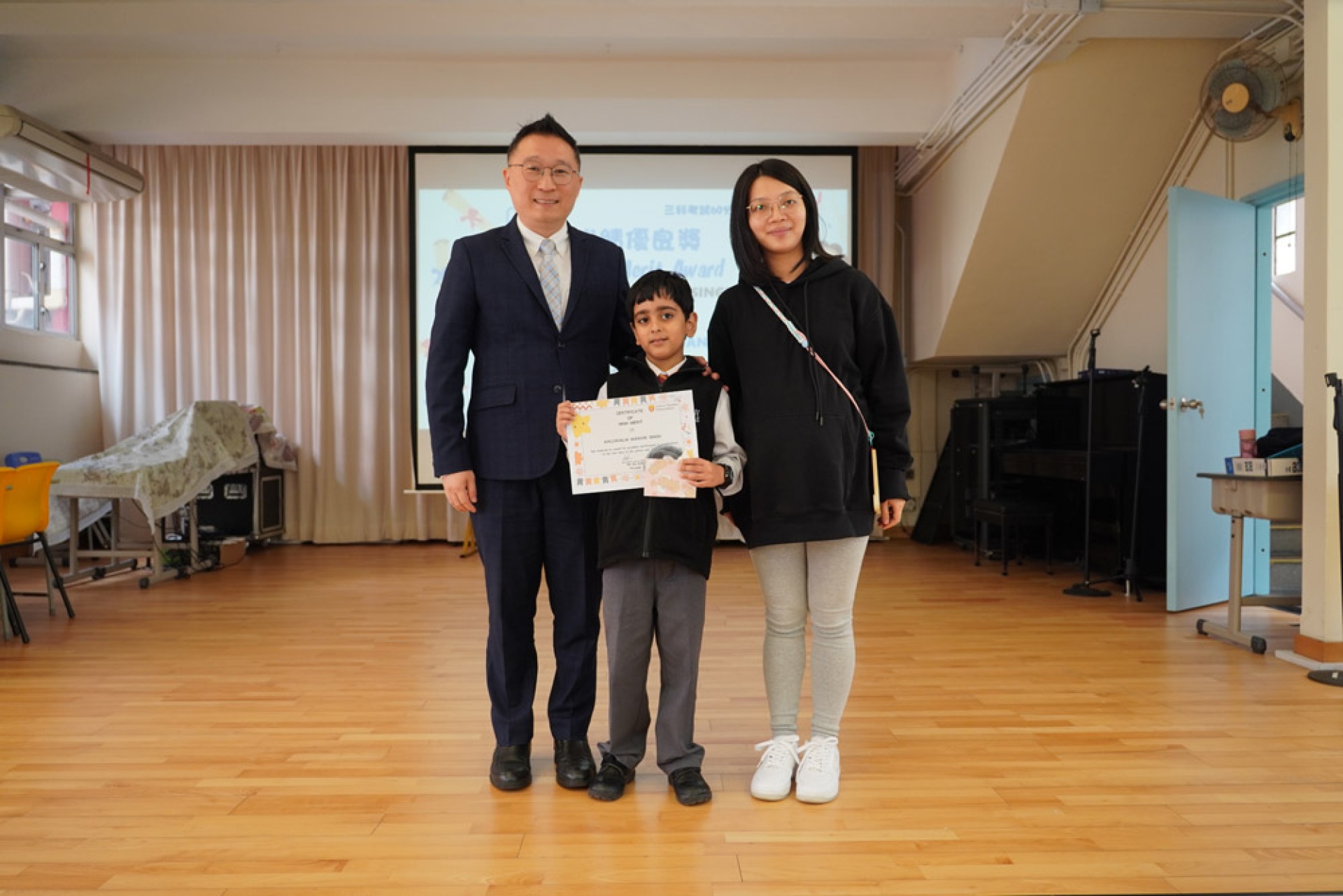 最後,夏老師帶領學生上台接受校長頒獎和合照。非華語學生有獨特的學習困難,他們為了克服困難非常努力,值得表揚!他們領獎時態度認真,合照時笑容燦爛,爲上學期劃上完美句號!