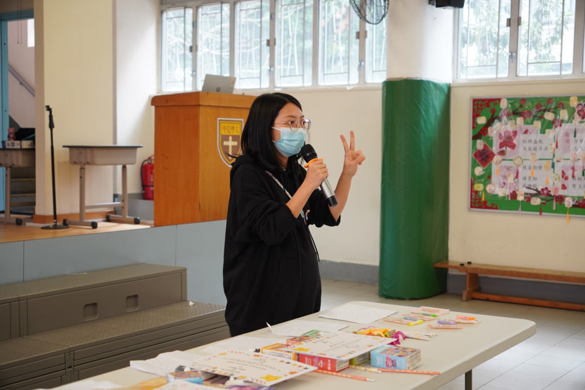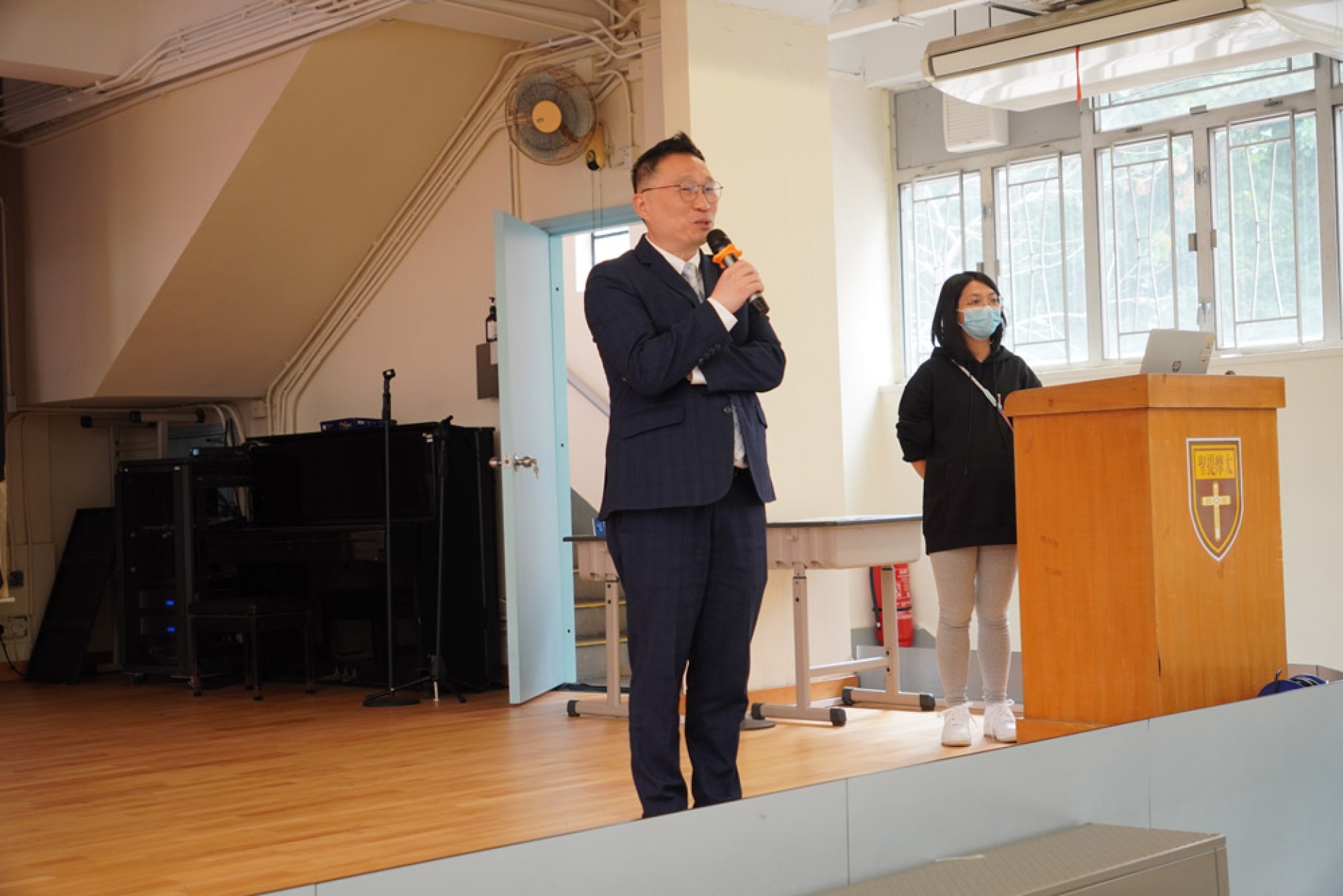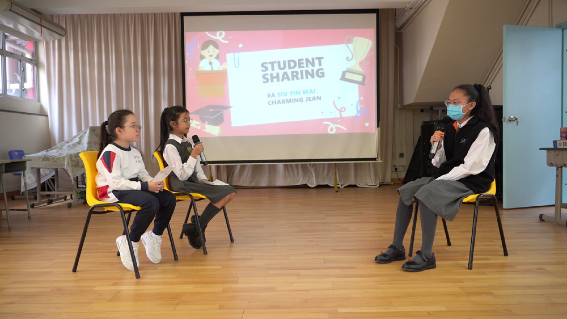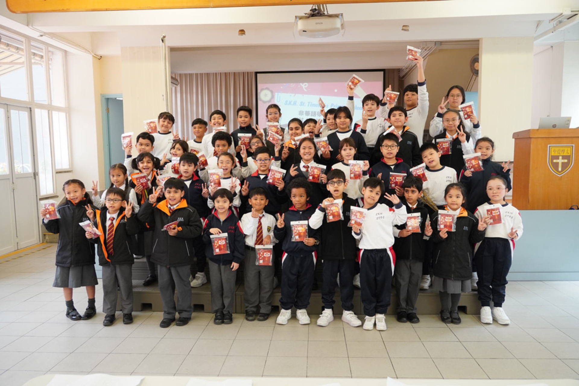 為鼓勵非華語學生繼續勤奮學習,並肯定他們在上學期付出的努力,本校於1月29日(四)舉辦了「非華語學生慶祝會」。當天,所有非華語學生齊集禮堂,接受校長訓勉。同學們都感受都校長對他們的愛護。訓勉後有訪談環節,由師妹4B Chloe和5B蕭美玉訪問師姐6A蕭賢慧。師妹們説話得體、冷靜、清晰,想必事前下了不少苦功!蕭賢慧無論校內校外,成績一直名列前茅,但她始終有着一顆勤奮學習的心,這次更大方分享了借中文書、認識華語學生、問老師等日常學習心得,希望在場的師弟師妹學好中文。