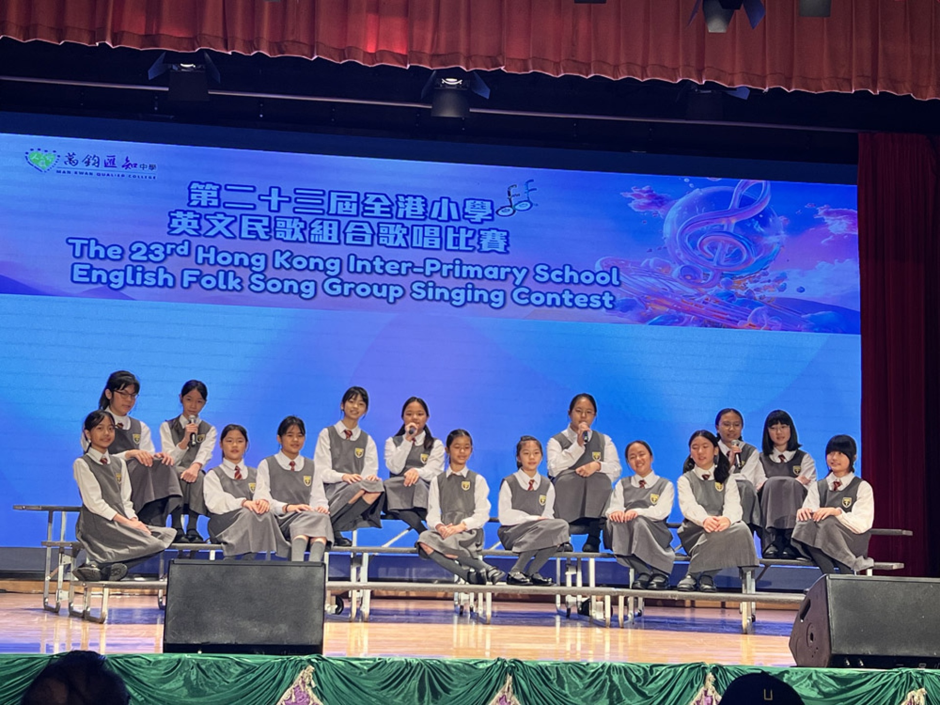 12月13日,我校的學生們精心準備,參加由萬鈞匯知中學主辦的「第二十三屆全港小學英文民歌組合歌唱比賽」。面對來自各校的激烈競爭,我們的學生展現了出色的表演技巧和團結合作的精神。他們的聲音如銀鈴般清脆動人,並獲得了肯定與讚譽,為學校贏得了榮譽。
