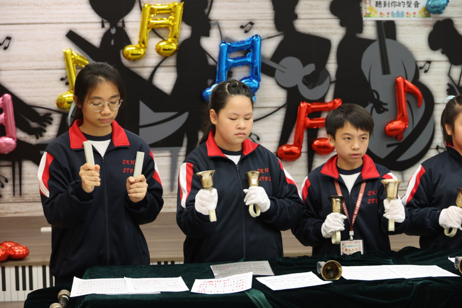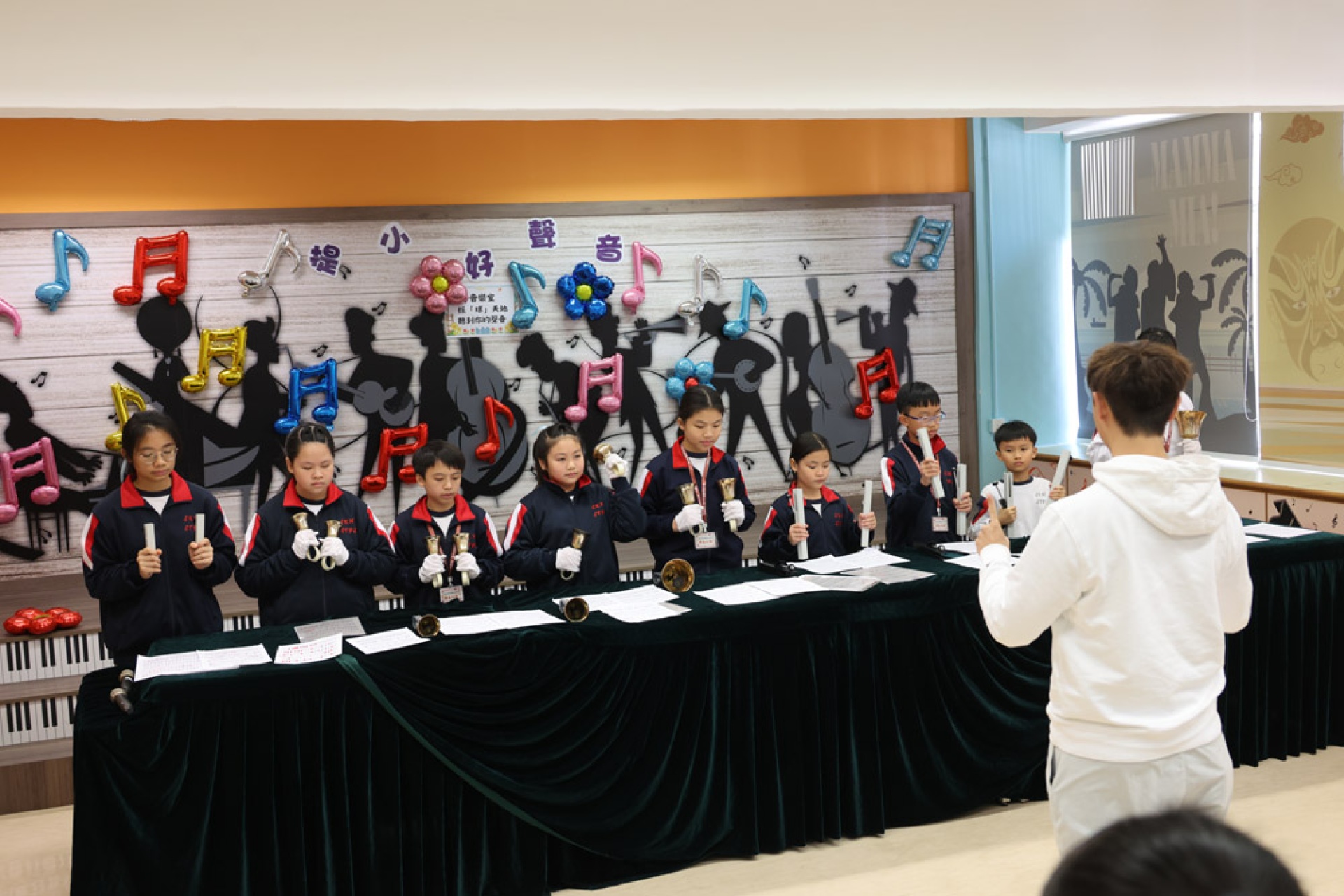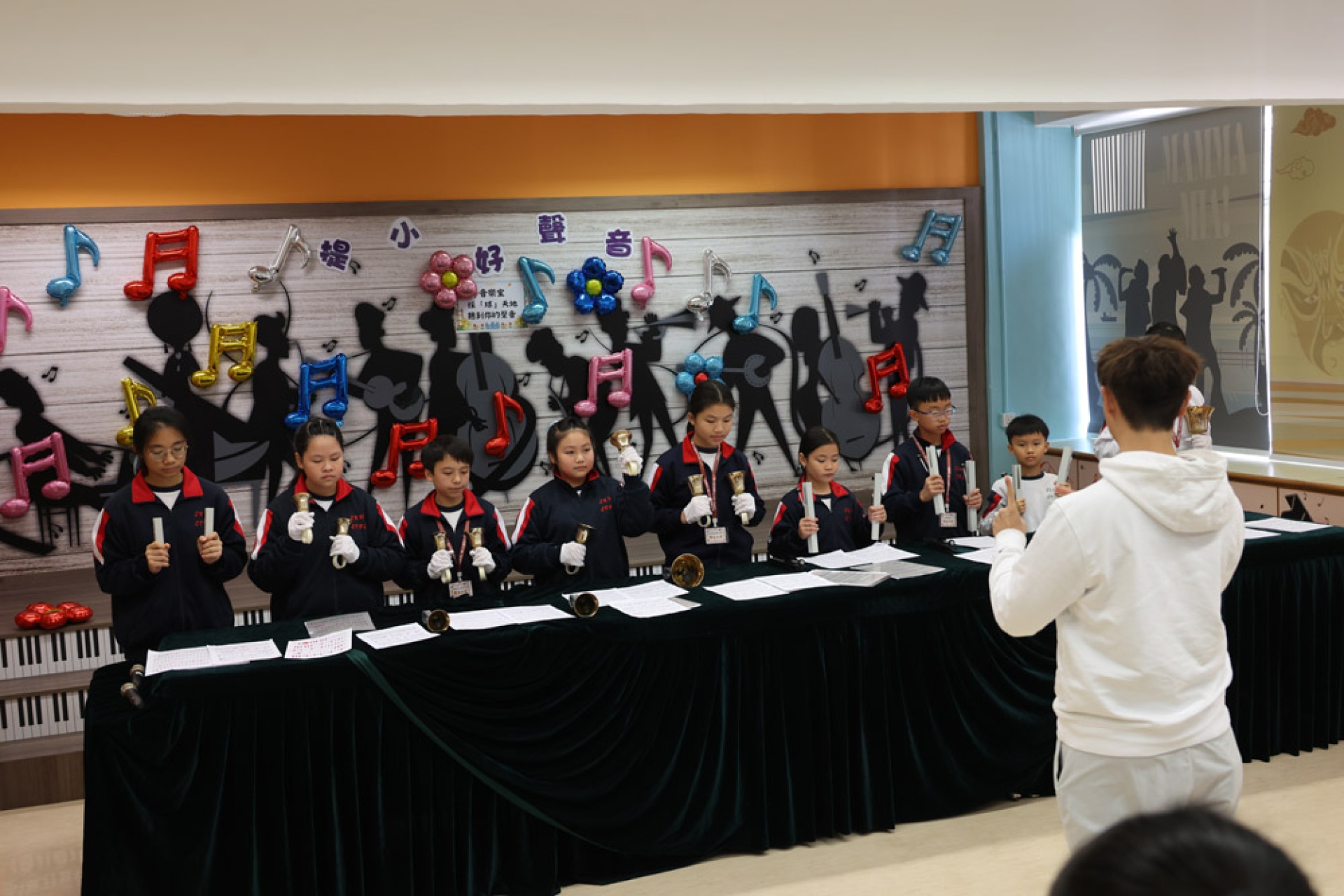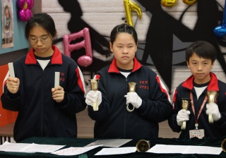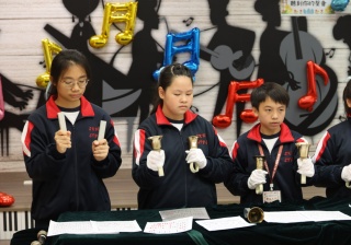 此外,我校的手鐘鈴隊為來賓演奏了多首溫馨的樂曲。清脆的鈴聲在音樂屋中響起,帶來了一種輕柔而愉悅的氛圍,讓在場的每一位聽眾都感受到音樂的治癒力量。每一首樂曲都如涓涓細流,流淌在每個人的心中,讓人感受到純真與美好的瞬間。