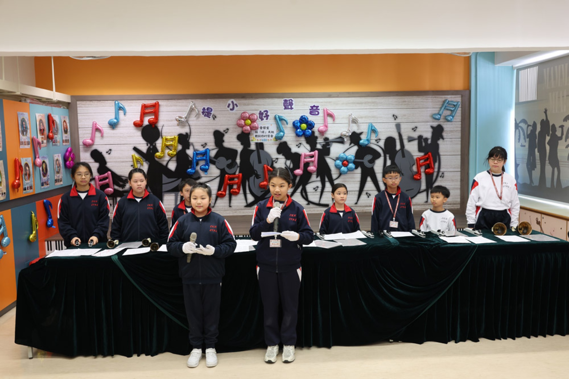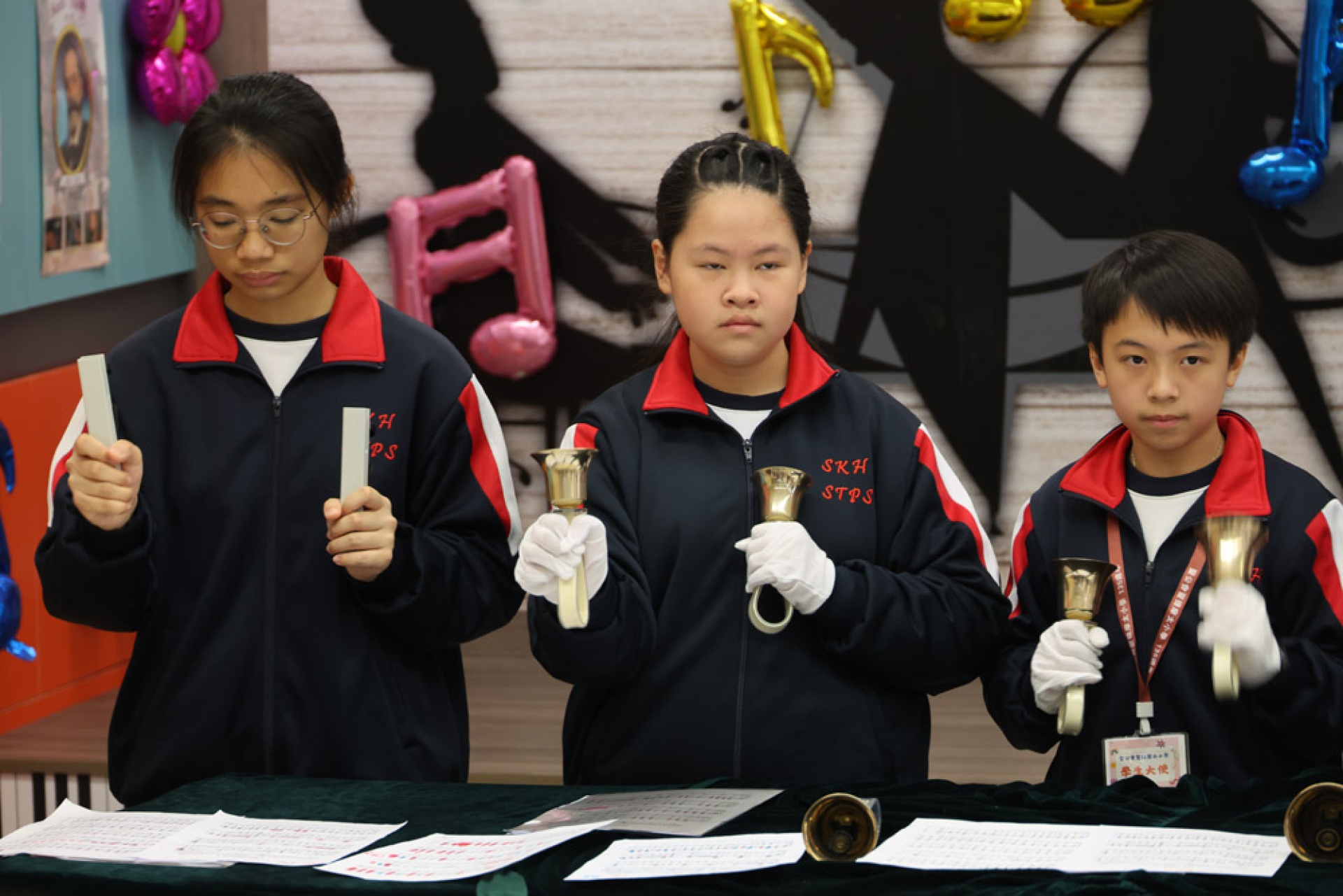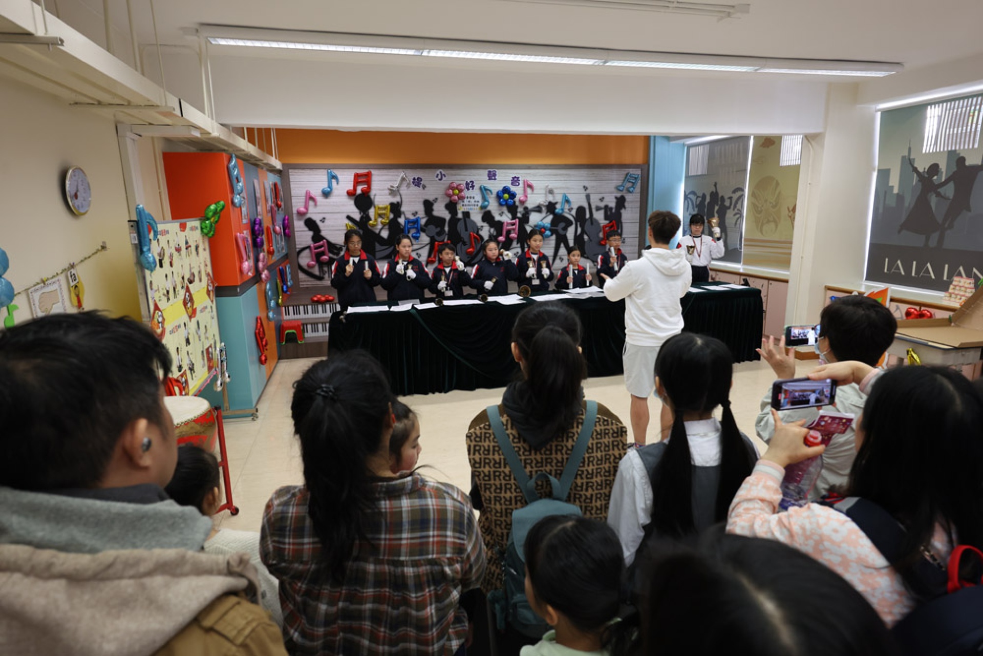 此外,我校的手鐘鈴隊為來賓演奏了多首溫馨的樂曲。清脆的鈴聲在音樂屋中響起,帶來了一種輕柔而愉悅的氛圍,讓在場的每一位聽眾都感受到音樂的治癒力量。每一首樂曲都如涓涓細流,流淌在每個人的心中,讓人感受到純真與美好的瞬間。