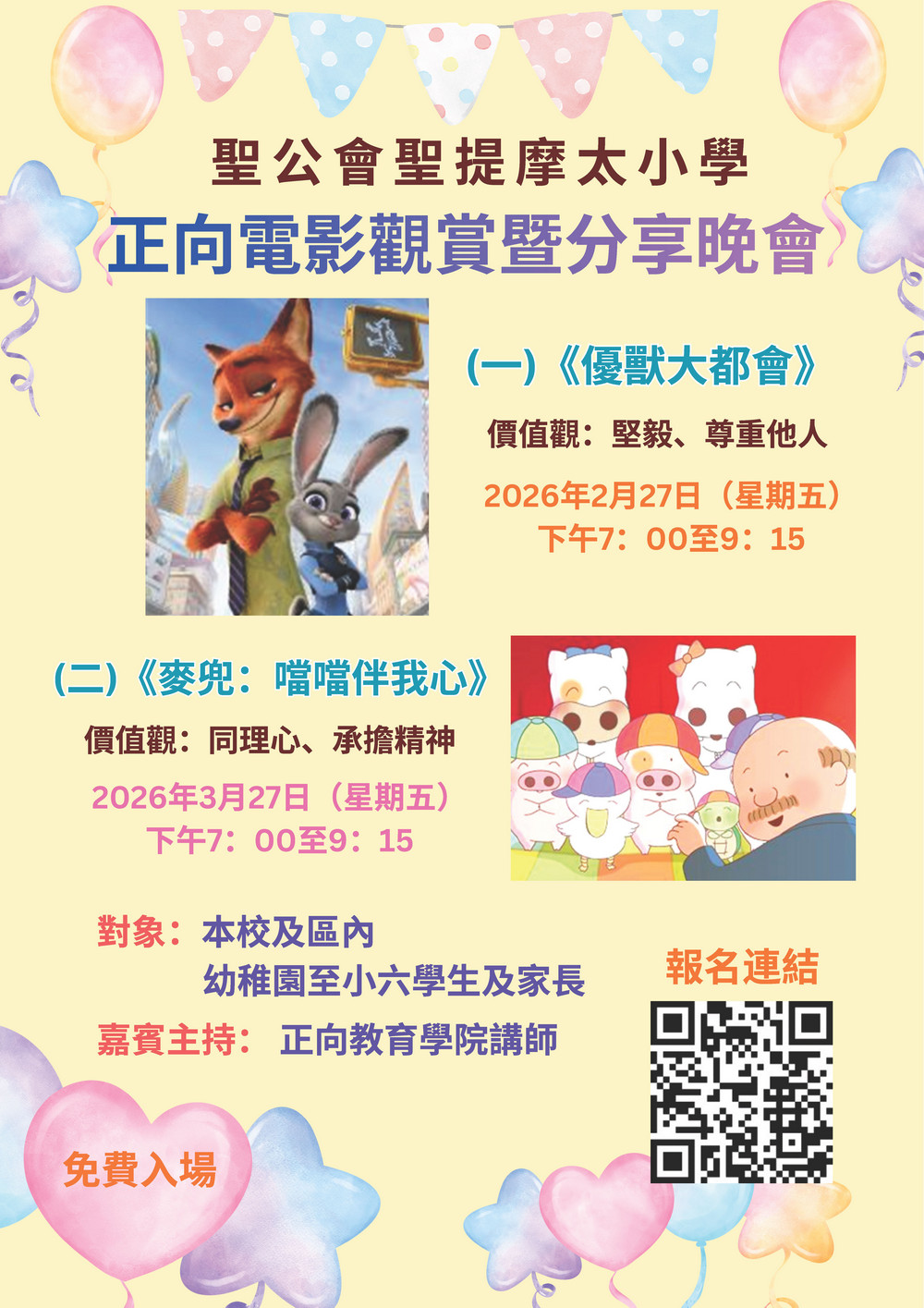 本校誠邀區內幼稚園至小六學生及家長,一同參與充滿啟發的電影之夜!