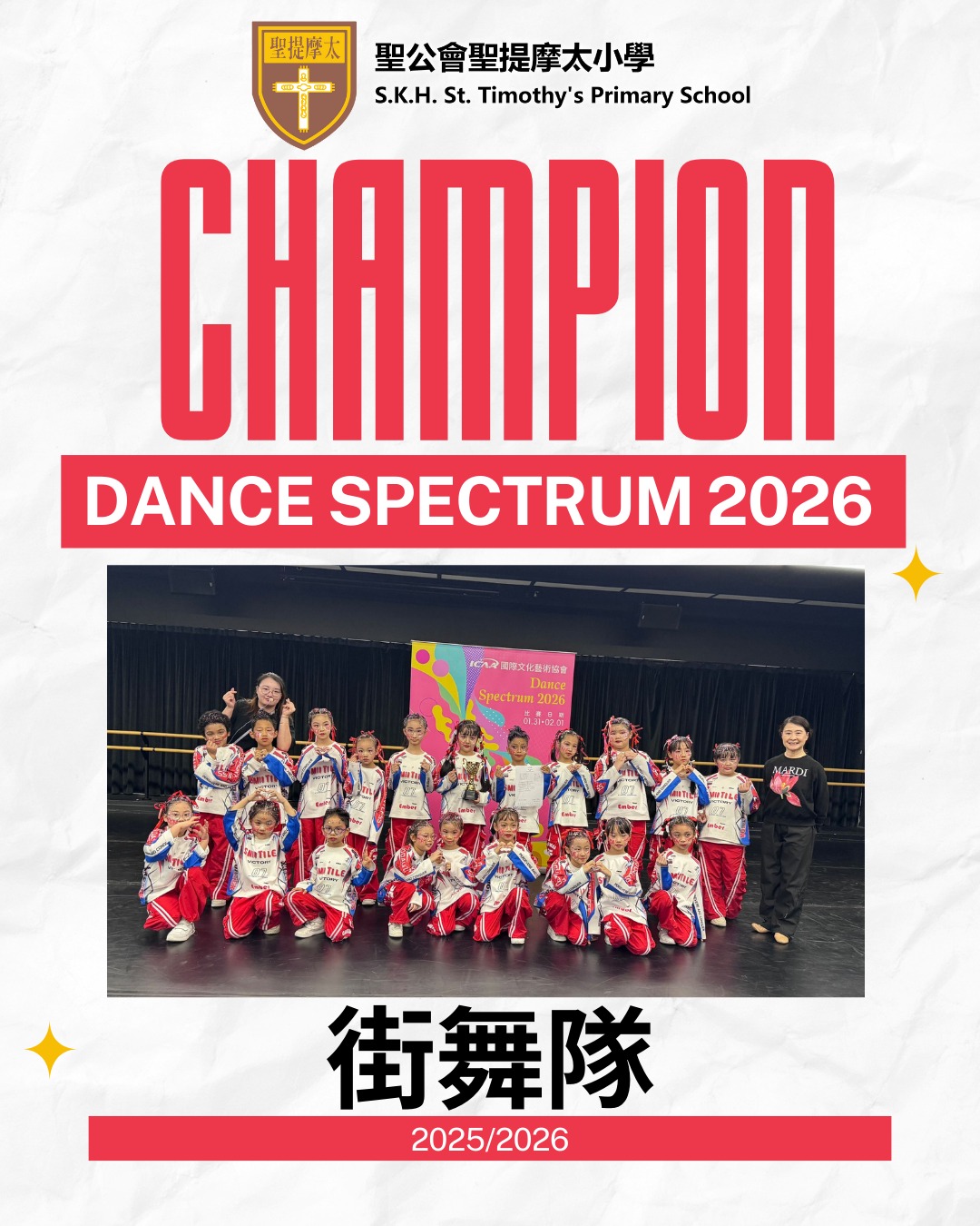 本校街舞隊在Dance Spectrum 2026比賽中勇奪群舞組冠軍!